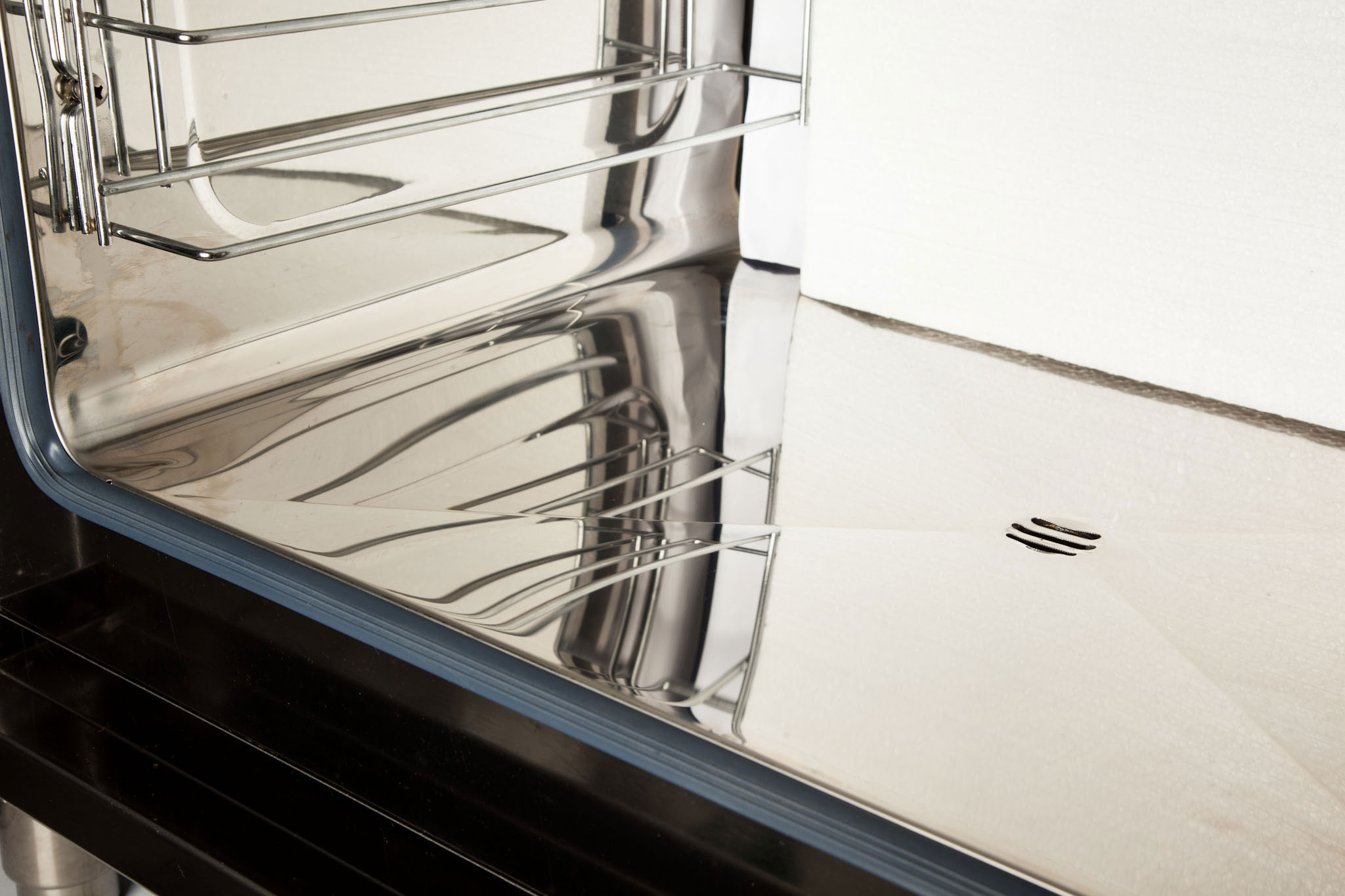 Δυνατότητα τοποθέτησης 6 ταψιών 60×40 εκ. Χάρη στην δυνατότητα εναλλαγής της βάσης στήριξης ταψιών μπορεί να τοποθετηθούν ταψιά G/N 1/1 για μαγειρευτά φαγητά.